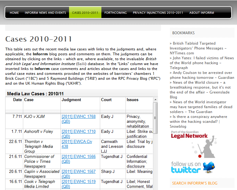 In this regular feature we draw attention to the last week’s law and media news and next week’s upcoming events. If readers have any news or events which they would like to draw attention to please add them by way of comments on this post.