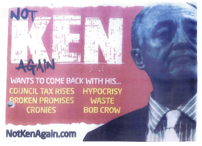 “Not Again: Ken wants to come back with his … Council Tax rises, Broken promises, cronies, scandals, waste Bob Crow. NotKenAgain.com”