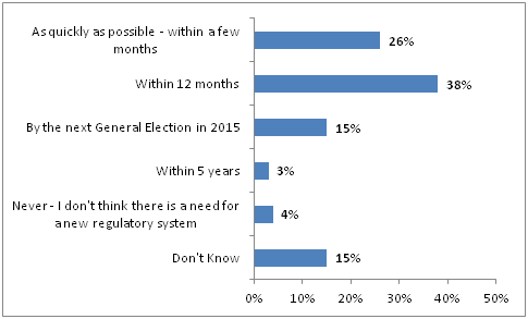 downloadThe public also feel that the recommendations of the report should be implemented quickly – 64% favour introduction of a new regulatory system within 12 months or sooner.
