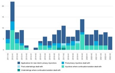 Details of privacy injunctions proceedings since August 2011 can be found in the figure below